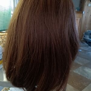 Soft chestnut red wig featuring gentle layers and a side-swept bang. Lightweight synthetic fibers deliver natural shine and smooth movement. Comfortable fit designed for everyday styling and versatile looks. Ideal for adding warm chestnut red color to your hairstyle.