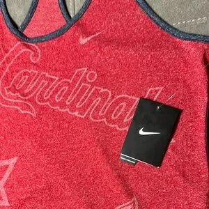 Experience the perfect blend of style and comfort with this Nike tank top, featuring a vibrant red color with pink trim. Designed with a sleeveless, relaxed fit, this crop top is ideal for both casual outings and athletic activities. The tank top showcases a sleek design, making it a versatile addition to your wardrobe.