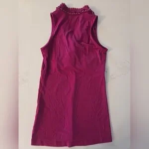 Vibrant fuchsia top with elegant ruffles. Sleeveless design for a stylish look.