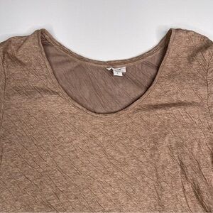 JJill Pure Jill Top Tunic Crinkle Long Sleeve Tan Brown Scoop Neck Neutral Minimalist Lagenlook Office Career Business Comfy Cotton