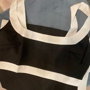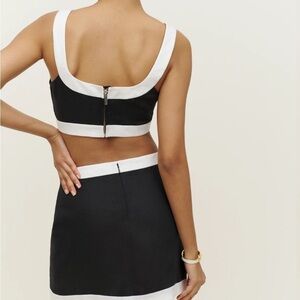 Bra friendly, cropped top, fitted waist, sleeveless, slim fit skirt, slim fitting skirt, and square neckline.