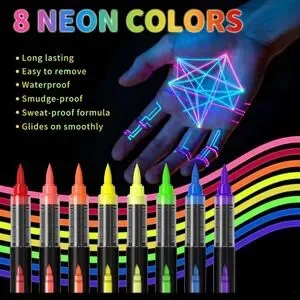 UV Face & Body Paint Neon Marker Set - 8 Fluorescent Colors | Go wild with color