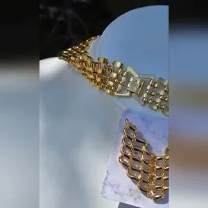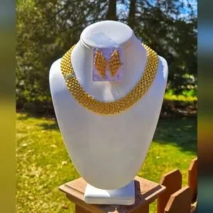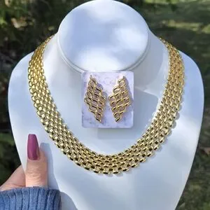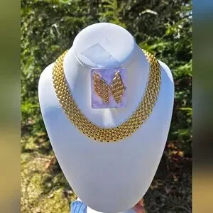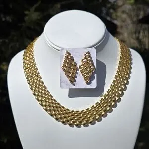 gold tone chain necklace and avon vintage gold open work art decor earring set. Perfect for any occasion, this set adds a touch of sophistication to your look.