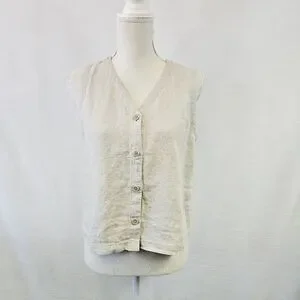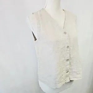 Eileen Fisher Organic Linen Tan Vest Petite Small