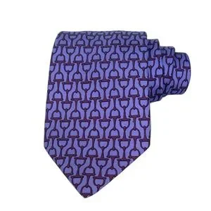Elevate your style with this sophisticated purple tie featuring a geometric pattern. Perfect for any formal occasion. Authentic Hermès Paris silk tie featuring a signature horsebit chain pattern in elegant purple tones. A recognizable and classic Hermès design, crafted in France from 100% silk.