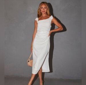 Edith Linen Cinched Tie Shoulder Midi Dress