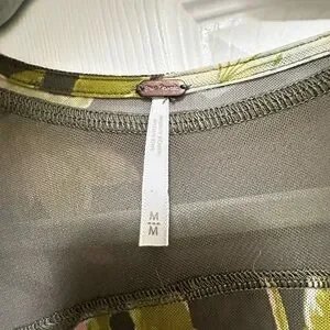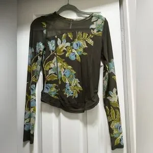 Free People Betty’s Garden Long Sleeves Stretch Top in Green Sz M Blue Flowers