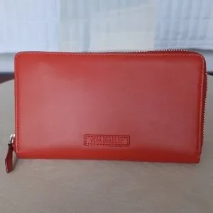 Vera Bradley Coral Red Faux Leather Accordian Style Zip Around Wallet