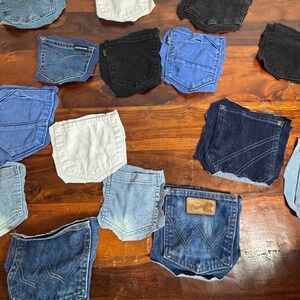 15pc Mixed Denim Jean Pockets Lot Levi's Wrangler Calvin Klein DIY Upcycle Craft