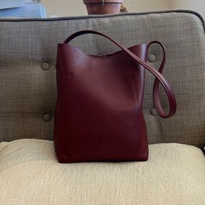 Stunning small Cabas bag in seasonless wine / burgundy color. No flaws, like new. Beautiful pebbled leather. Magnetic closure. Authentic.