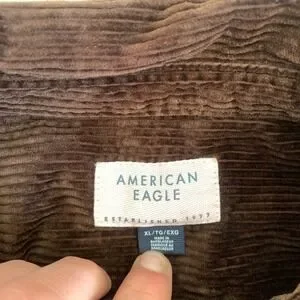 American Eagle Brown Corduroy Button Down Shirt Womens XL Long Sleeve Cotton