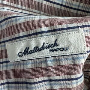 Mattabisch Napoli - Men's Brown Blue White Plaid Shirt (15.75, 40)