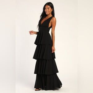 Lulus NWOT Amazing Evening Black Tiered Maxi Dress Medium