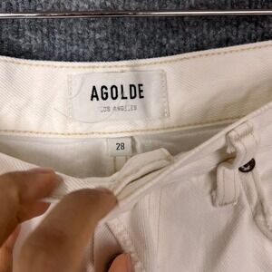 AGOLDE Parker long Denim Cut Off Shorts Button Fly Frayed Hem Womens Size 28