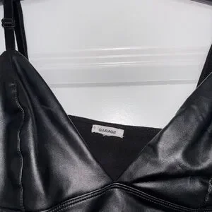 Garage Black Faux Leather Cropped Bralette