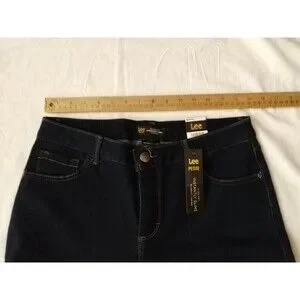 NWT Woman LEE Instantly Slims JEANS Sz 10 PETITE Dark Blue Straight Leg Relaxed