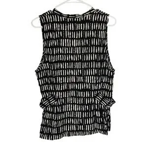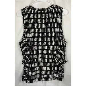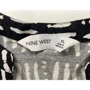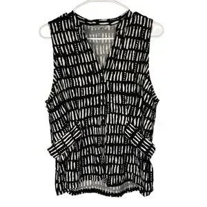 Nine West Womens XL Black White Abstract Dash Print Sleeveless Button Front Top