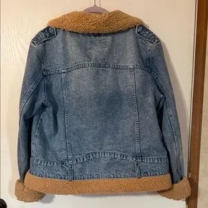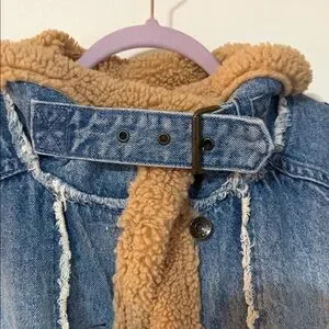 We The Free Blue Denim Jacket with Tan Sherpa Trim