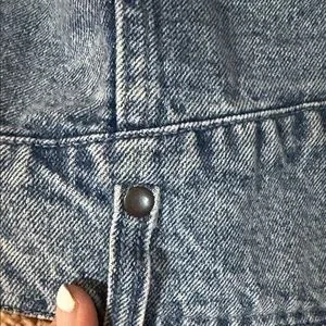 Classic blue denim jacket by We The Free. Plush tan sherpa collar, cuffs, and hem. Button-front closure with angled front pockets. EUC. Size small. But will fit medium also.