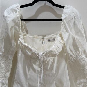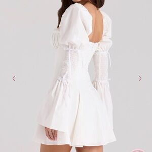 HOCB Ellerie White Cotton Flute Sleeve Mini Dress