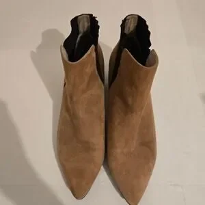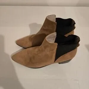 Halogen Skylar Pointy Toe Suede Booties Tan Black Slip On 8.5