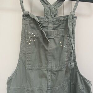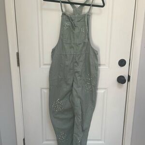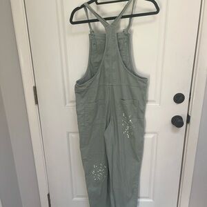 Aerie werk and play twill jumpsuit overalls w/ paint splatter in green small