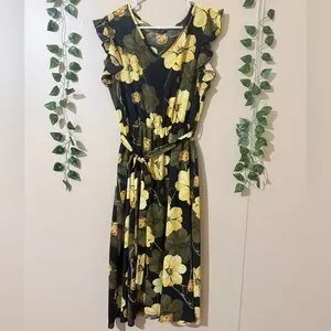 SHEIN Black and Yellow Floral Maxi Dress