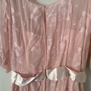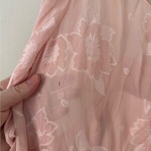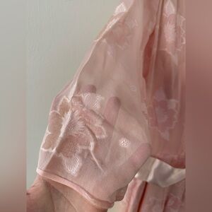 Vintage 80s Pink Silk Chiffon Frances Brewster Dress Sheer Floral Velvet Sz L/XL