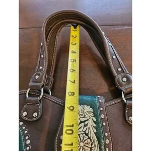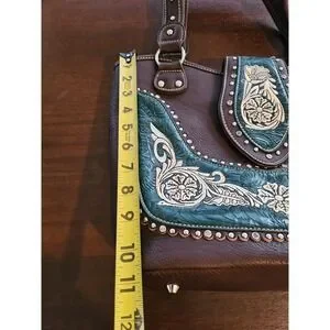 Montana West Buckle Shoulder Tote Purse Concealed Carry Rhinestones Brown Green