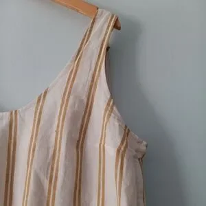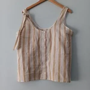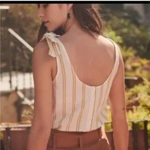 Sézane Rio Ecru Ocher Stripe Tie Shoulder Linen Blend Top 40/8