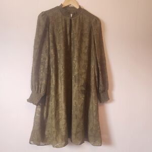 Tommy Hilfiger Olive Green Floral Chiffon Shift Dress Lace