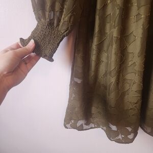 Tommy Hilfiger Olive Green Floral Chiffon Shift Dress Lace Size 14