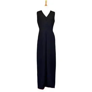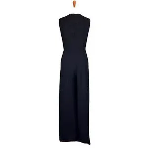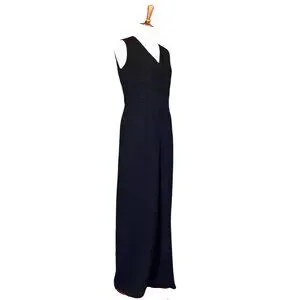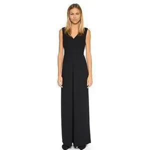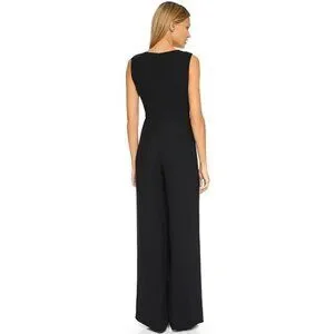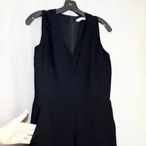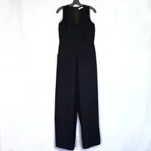 Vince 10 Black Double-V Neck Sleeveless Wide Leg Culotte Jumpsuit with Pockets