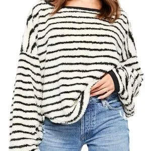 Stylish knit sweater with bold black and white stripes. Ideal for layering. Free people Breton sweater. Does have wash wear/ piling inside. Size small but oversized. Slight cropped fit