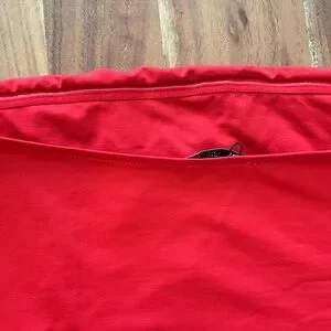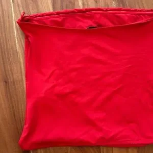 Add a splash of color with this vibrant red tube top, featuring a stunning floral design. Size Large, NWOT. Grippers run along the inside of top for stability. Smocking on the bottom half of sides. Pit to pit is 16”, unstretched. Length is 15”. Lined.