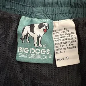 Vintage Big Dogs Swim Trunks, Green/Blue, Size Mens Small 1990s, 90s Pool Beach