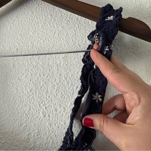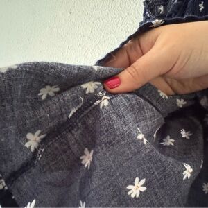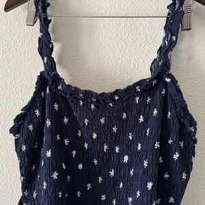 • features: This Ava Viv tank top is a Boho Chic essential featuring a charming navy blue and white daisy floral print. The smocked bodice provides a comfortable, flattering fit with a romantic peplum hem. A versatile piece for warm weather, it is perfect for Cottagecore or Coquette styles. Approx measurements: 28” length, 20” pit to pit (smock stretches up to approx 24”).