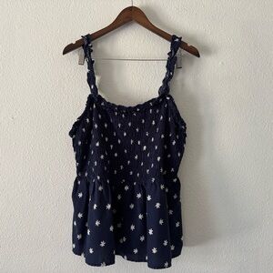 Cottagecore Ava Viv Navy White Daisy Floral Smocked Peplum Tank Top 1X Boho Chic
