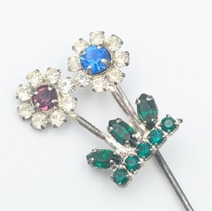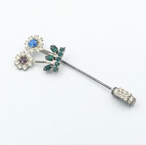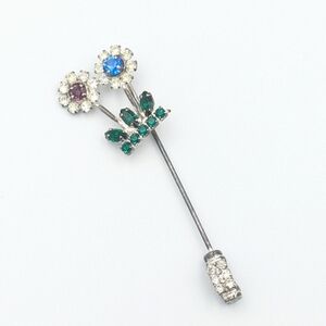Vintage mid-century very sparkly rhinestone flower stick pin / hat pin/lapel pin
