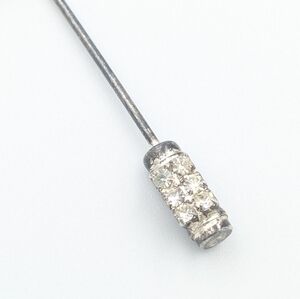 My photos do not do this beauty justice. The rhinestones are vibrant and look brilliant when they catch the light. Silver tone stick pin (some signs of age on the metal).