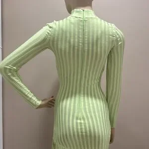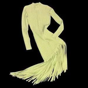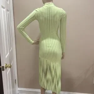 Ronny Kobo Lime Green Ribbed Fringe Dress