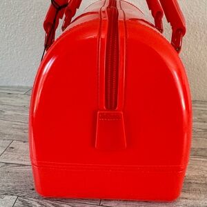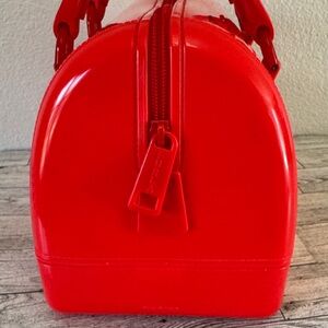 Furla RE•CANDY Grenadine Boston Bag NWT. Made in Italy. Bright glossy red/coral/pink tone satchel with structured dome shape. Dual top handles for hand carry. Measures 10.25” x 7” x 6”