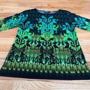 Bob Mackie Shirt Womens Sm Green Wearable Art Pullover Long Sleeve Pattern Top