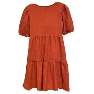 New CRYSTAL DOLL tiered shift Dress Women's size XS. Short balloon sleeves. Partial tag, brand new, never worn. Red/orange in color. Fully lined. Mild stretch material.
