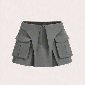 Stylish gray mini skirt featuring multiple pockets. Perfect for casual outings. Also has built in shorts. NEVER WORN