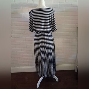 Chic striped midi dress with pockets. Midi length. Lightweight and comfy.