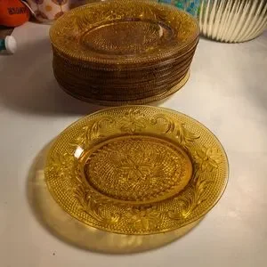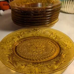 Tiara Amber Pressed Glass Dessert Plates - Set of 9