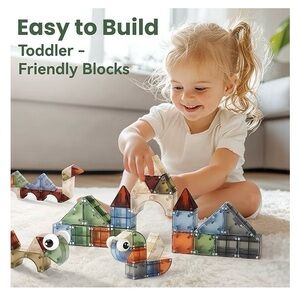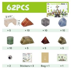 iPlay, iLearn Kids Magnetic Blocks, 62 PCS Magnet Stacking Block Building Toy, Toddler STEM Learning Montessori Sensory Toy. There are including 8 kinds of 3D magnetic blocks, Such as cylinder, cube, arch, cone, etc. These magnetic blocks can not only be put together into numbers, letters, buildings. A pair of cute eyes also can create a lot of animal shapes. Three stickers also adds interest to the building blocks. Children can acquire a strong sense of color and creativity at a very young age. Including 3D shapes, digital counting, architectural design. This set of STEM toys not only exercises hand-eye coordination and promotes creative thinking, but also promotes cognitive and sensory development. Magnetic blocks are made of Non-Toxic and durable ABS plastic, the round corner design won't hurt your children's little hands. NEW