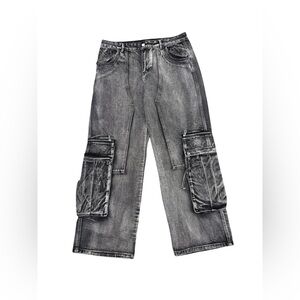 NWOT Vale Forever Mns Faded Gray Triple Pocket Wide Leg Jeans Oversize Cargo