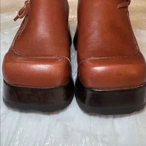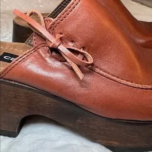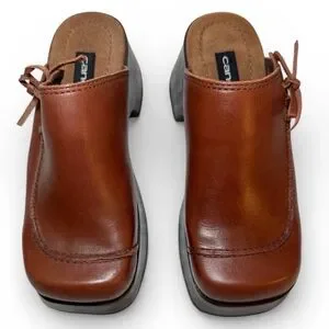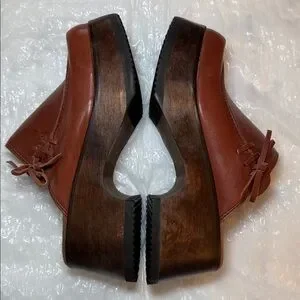 Vintage 90’s Candie's Brown Leather Platform Clogs Wood Heel Boho NWOT Size 6